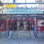 こちらは正面、足場を組んで協賛金を払ったお店の提灯を取り付けてますね☆
